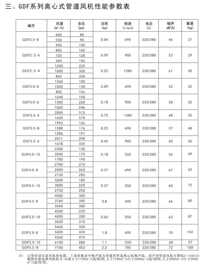 三、GDF 系列低噪聲離心管道風(fēng)機