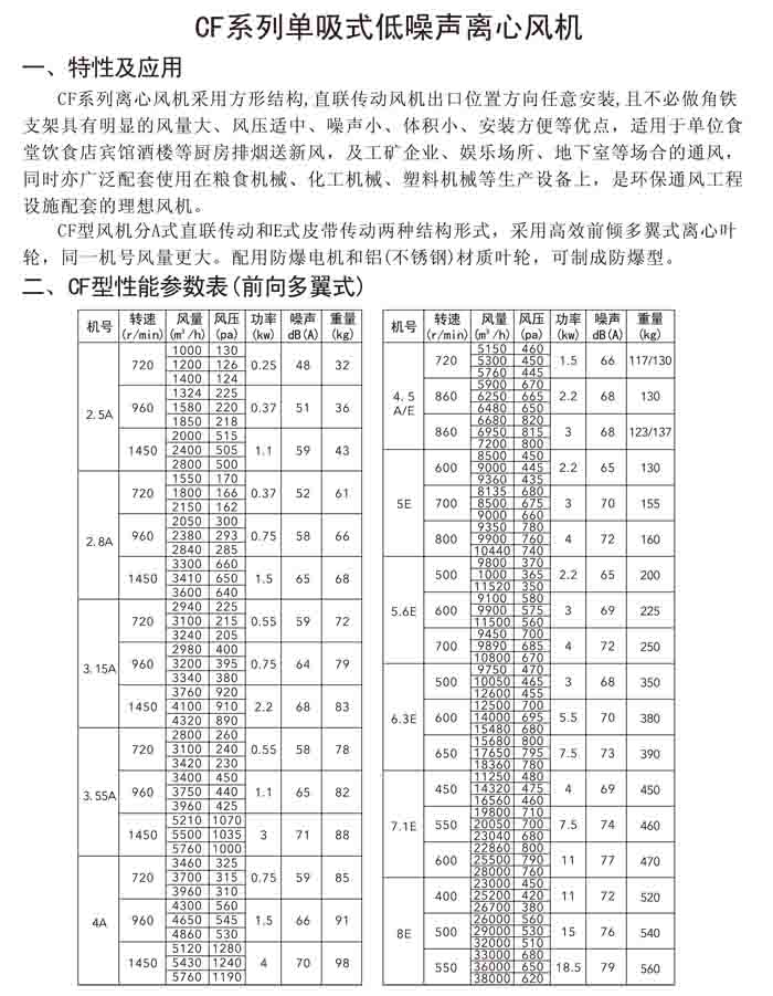 四、CF 系列單吸廚房排油煙風(fēng)機(jī)