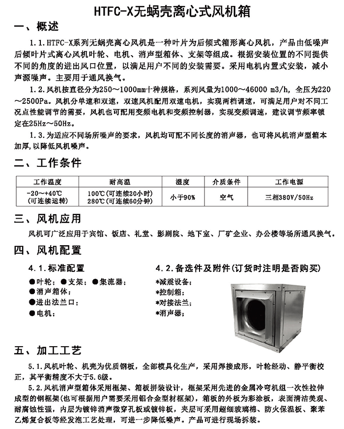 一、HTFC(DT)-I、II、V 系列低噪聲消防排煙(兩用)風(fēng)機箱